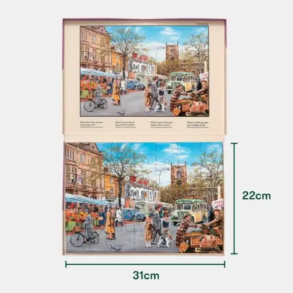 Mercado de outono Ir ao mercado faz parte da nossa história. Era uma oportunidade de relação, de criar novos laços e, claro, fazer mexer a economia local! O novo puzzle tem 35 peças! Os benefícios que a realização de puzzles podem trazer às pessoas com demência estão já bastante documentados. De facto, realizar atividades de estimulação cognitiva pode contribuir para desacelerar a degeneração causada pela demência. A Humanamente tem outros puzzles à sua disposição que são igualmente interessantes!